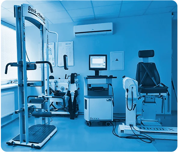 У діагностиці та тренуваннях ми активно використовуємо систему, що складається з 2 сучасних діагностичних комплексів: діагностичну систему Back Check та ізокінетичну систему Biodex. Діагностика "Back Check" - німецьке обладнання комп'ютерної діагностики, що дозволяє встановити причини болю невідомого походження в області шиї, спини, попереку. «Biodex» - це система прецизійного тренування та тестування м'язів за заздалегідь складеною програмою, основну інформацію про яку він отримує із власної системи діагностики.
